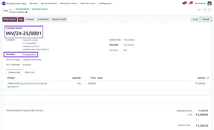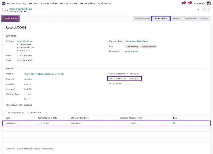 After Confirming the warranty will move to "To Be Invoice" Stage and history will be created