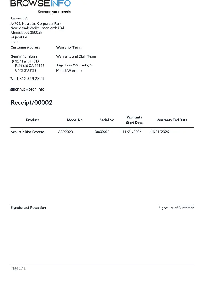 This Odoo Apps allow you register warranty for a particular product with its Serial Number. There are two kind of warranty: 1. Free Warranty 2. Paid Warranty. With the help of this odoo module you will be able to create and track warranty easily, using serial number start warranty period of your product with easy registration process. Warranty period and setup is configurable option under the product level and based on that warranty start date, end date and warranty period defines for each products.You can also Claim the already created warranties within warranty period and without warranty period with paid and free warranty setup. You can also have option Renew the warranty period of your product as per the configuration. Automatically invoice creation process is available for paid warranty and Automatically notification and reminders email to the customer from the Odoo system is also available.