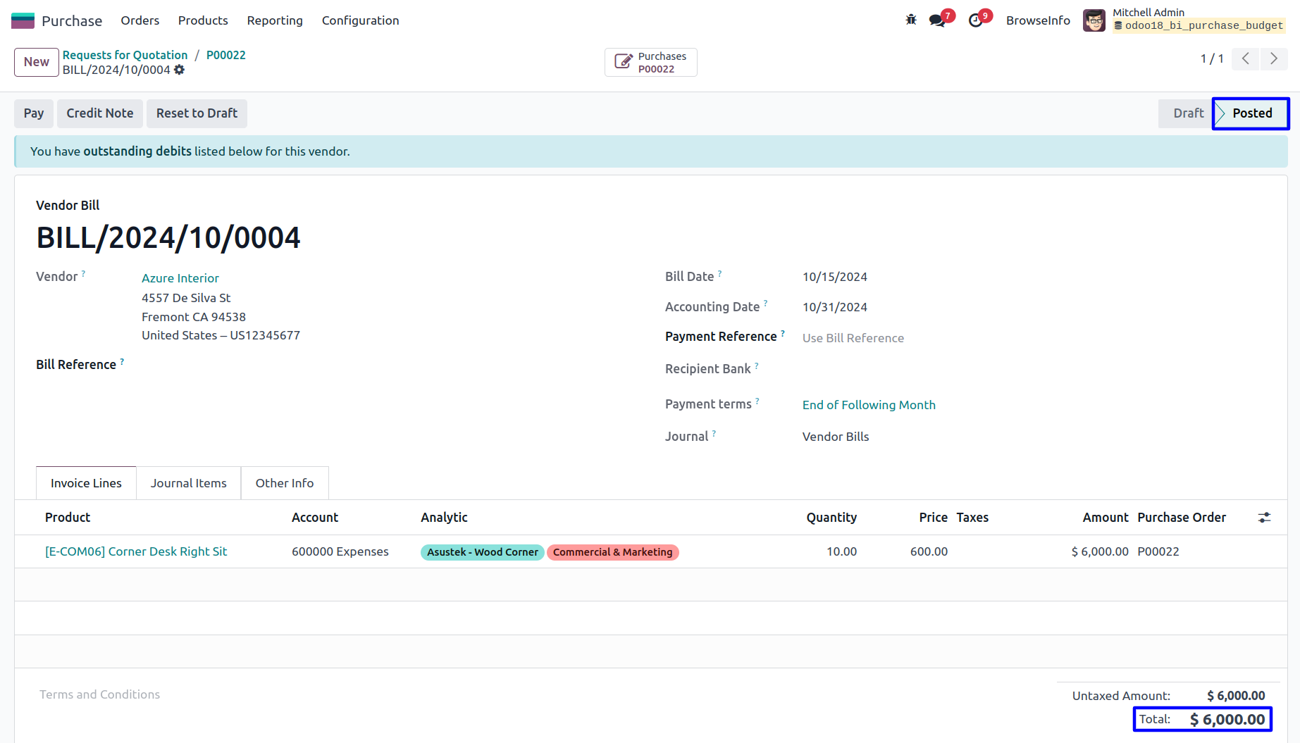 Do you wants to integrate odoo budget with purchase order and Vendor Invoice Bills then don't worry using this odoo apps user can integrate accounting budget management with purchase order and vendor bill based on analytic account.