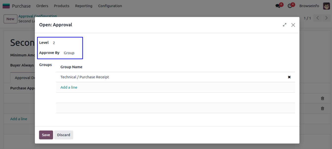 User can select approval process by 'Group' and define group name to approved the purchase by specific group users.