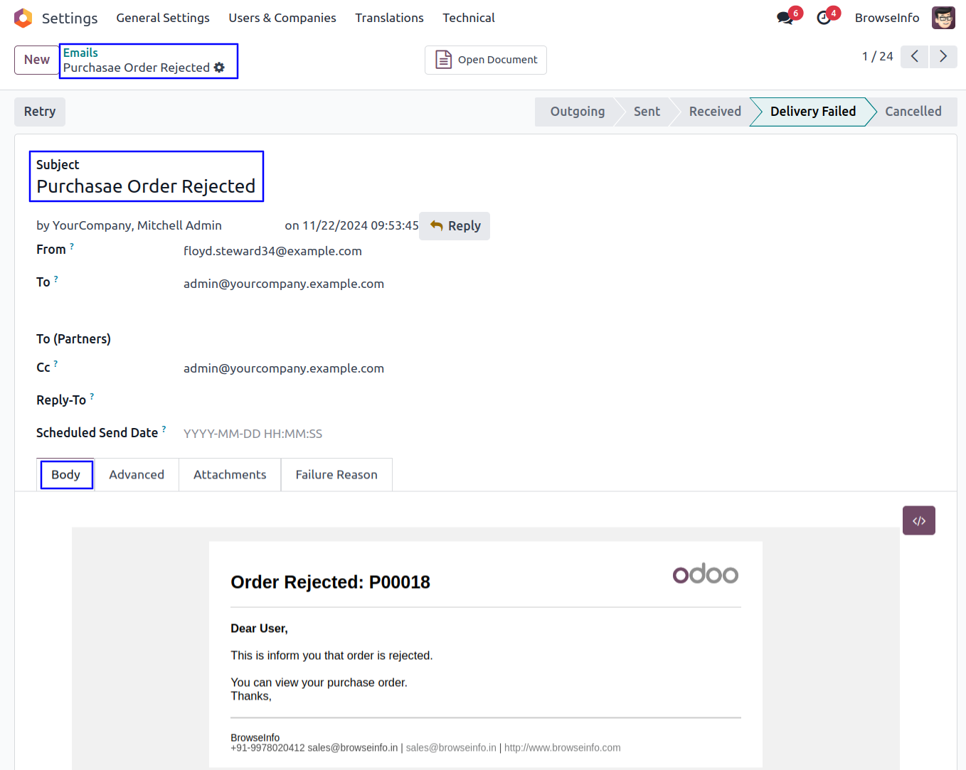 Purchase Dynamic Approval Odoo App helps users with dynamic and multi-level approvals in requests for quotations. Users can configure dynamic approval from the purchase configuration and set approval based on the minimum amount of the total and untaxed amount. A RFQ should be approved by the user and a specific group. Users can view email notifications about approval and rejection of purchase RFQs or orders.