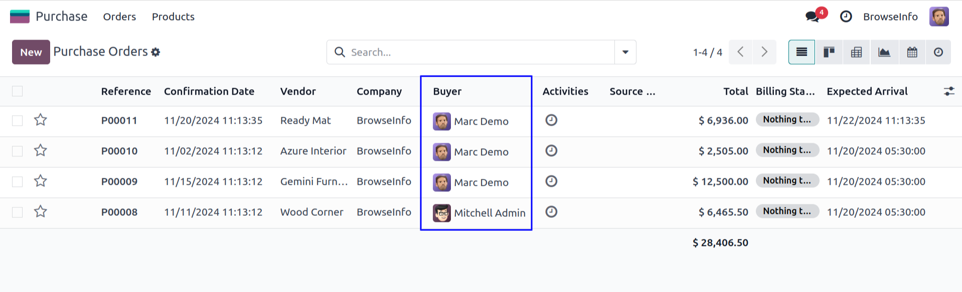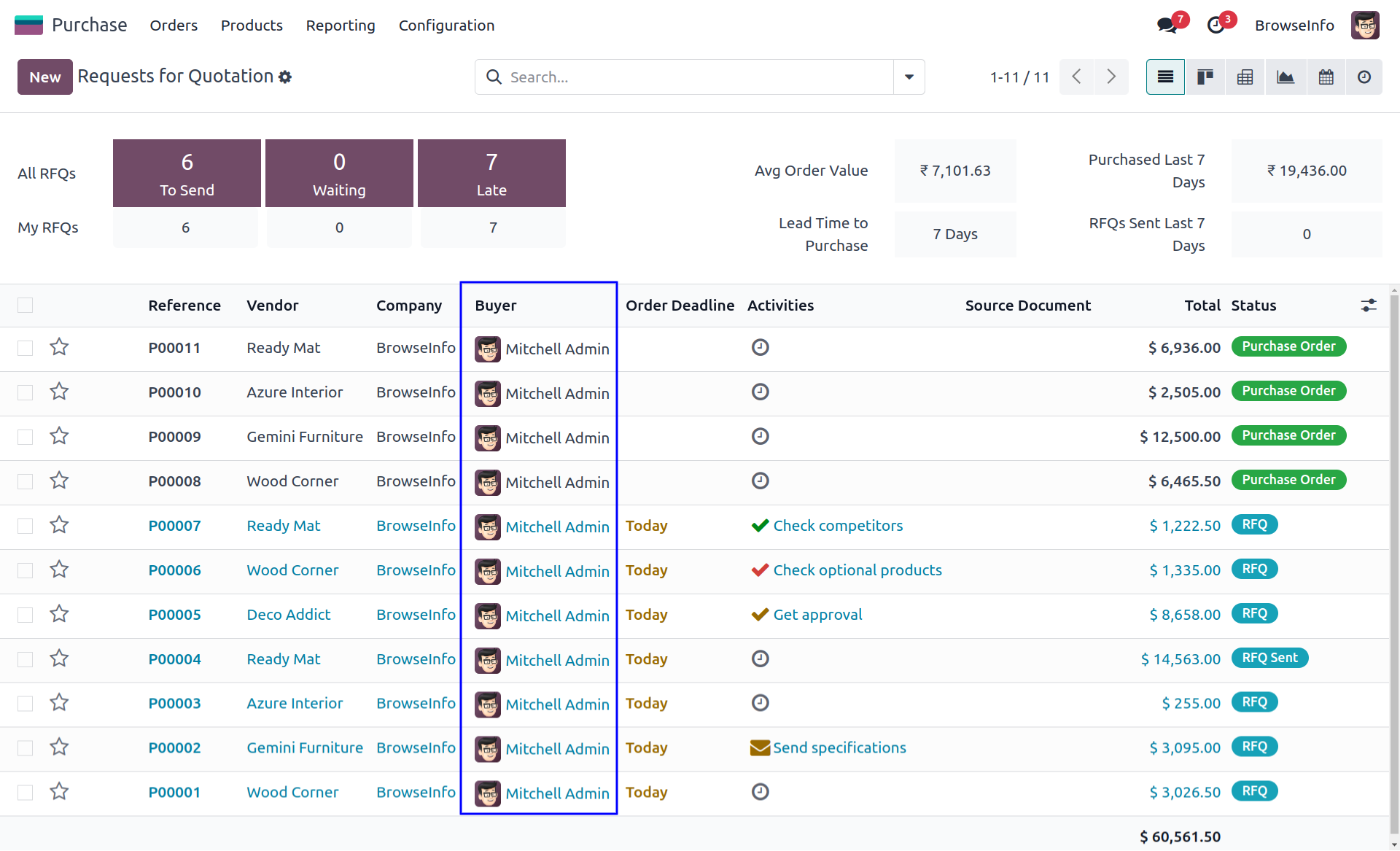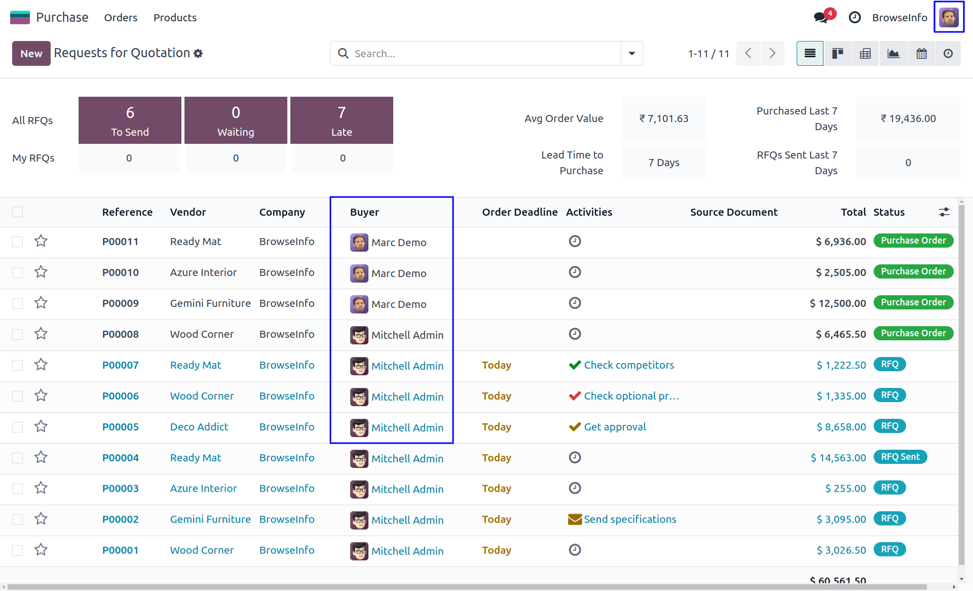 Purchase Order and RFQ Own Management Odoo App helps users to restrict the specific purchase order/request for quotation to specific purchase representatives. In user settings there would be two access rights 1) Own Purchase Documents Only, 2) All Purchase Documents. When the user owns purchase documents selected, it will only show the PO/RFQ of the employee's own, whereas in all purchase documents it will show all the documents.