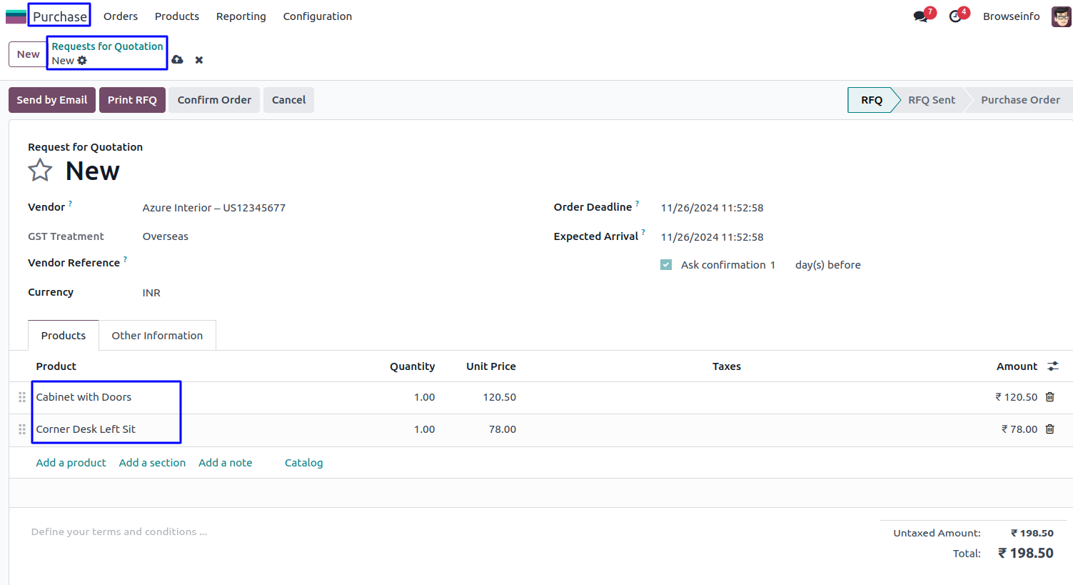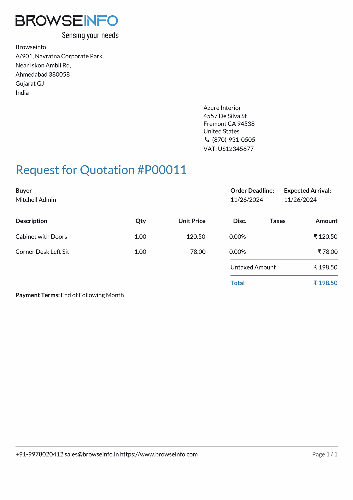 User can also see that product internal reference also removed on rfq/purchase order pdf report.