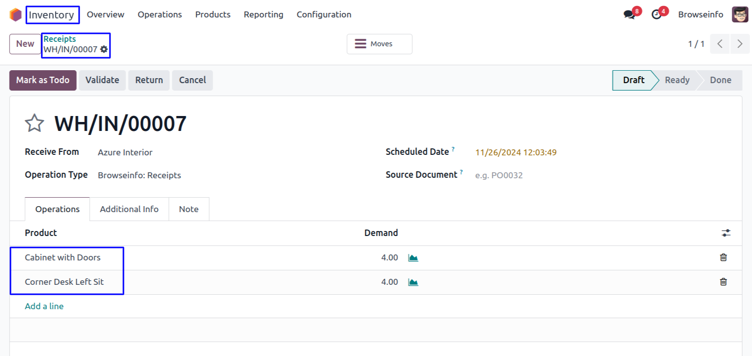 While selecting products on delivery order/receipt line user can see there will no product code displayed with product name.