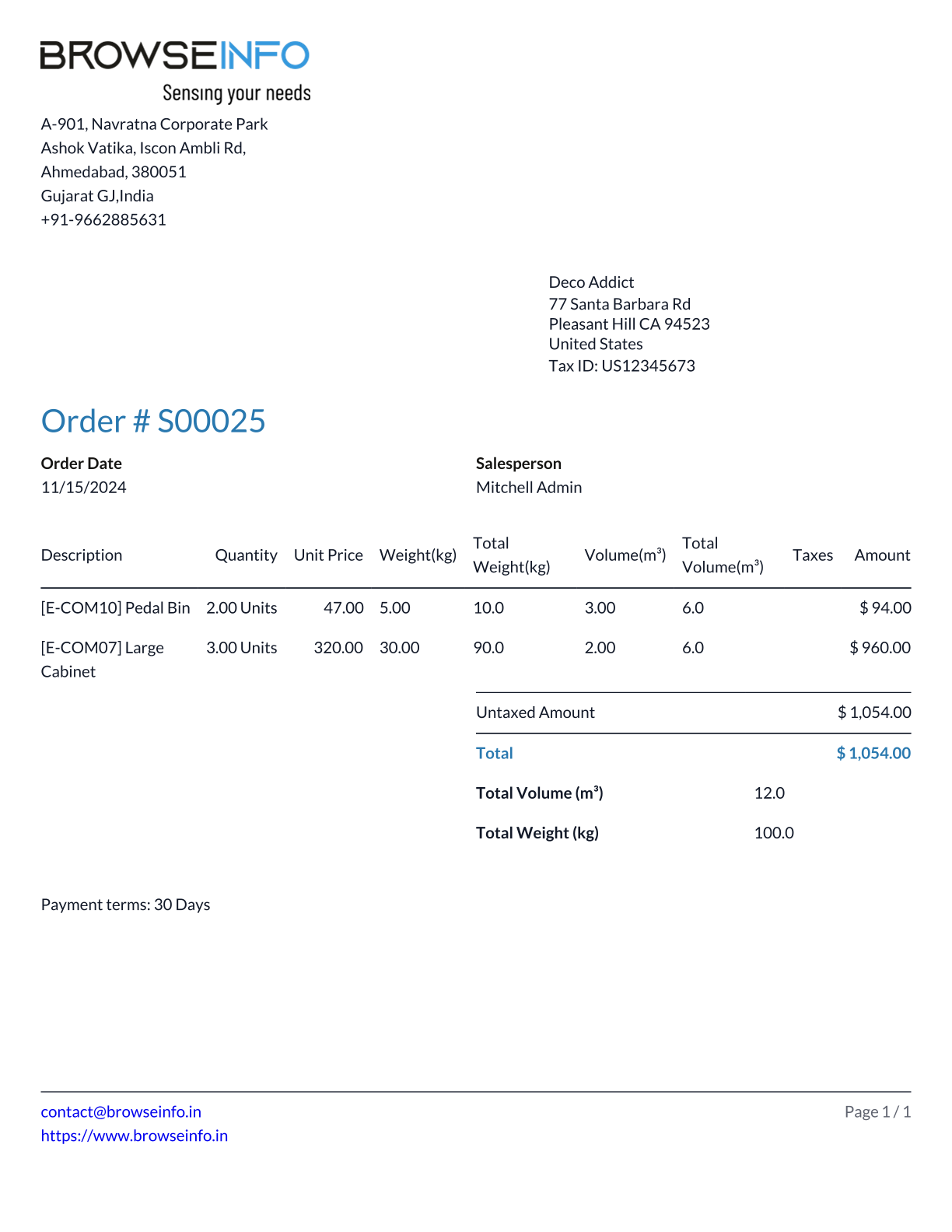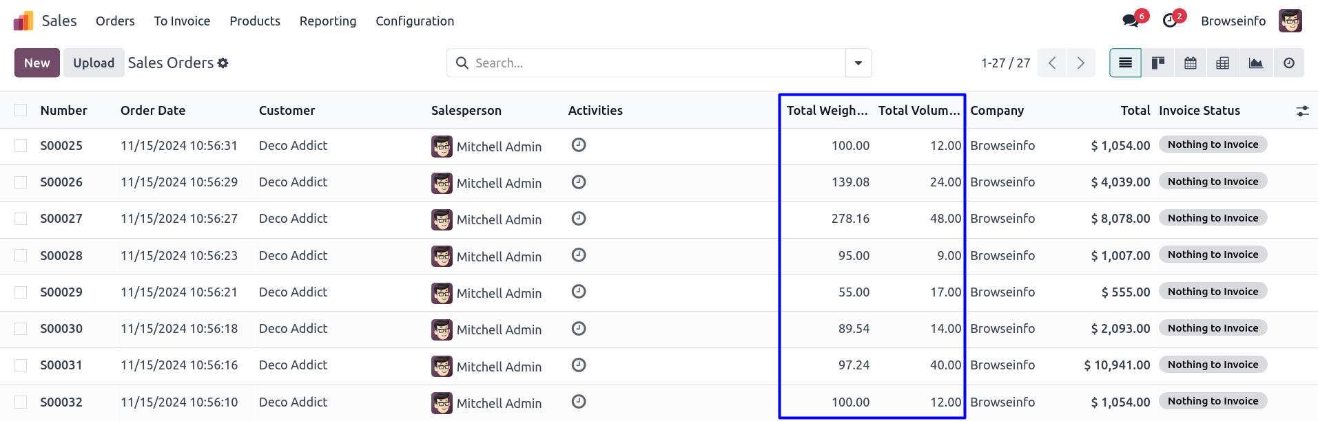 Product Total Weight and Total Volume of Sale Orders