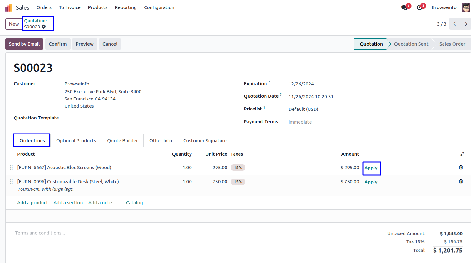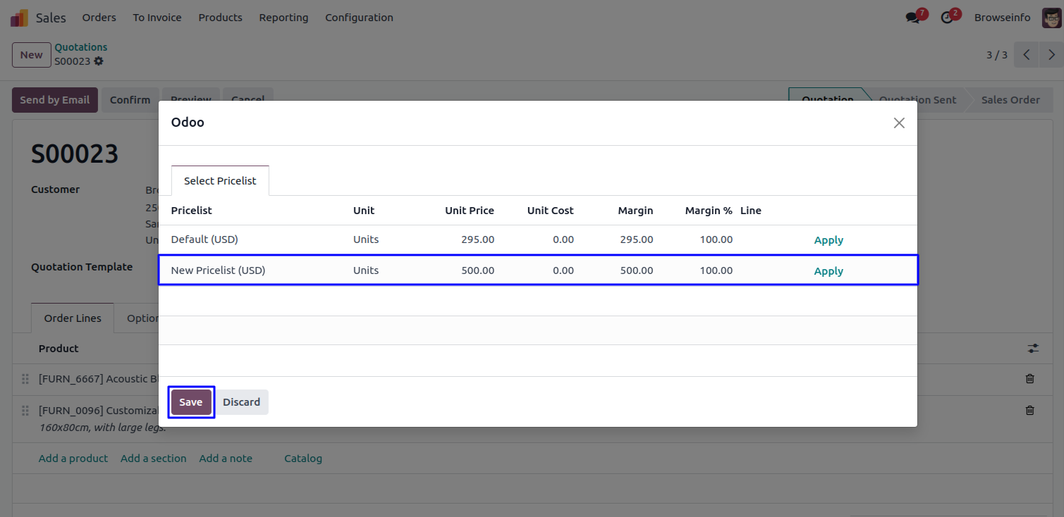 Sale Multi Pricelist Odoo App is used for different products with different price lists in the same order. Users can easily set different pricelists for each product into the sales order line.