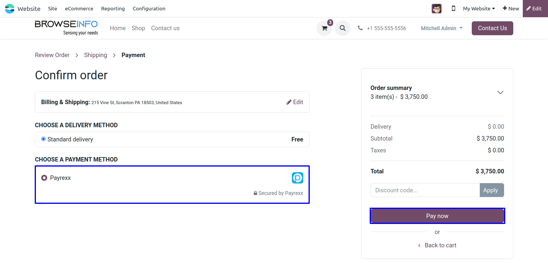 After clicking on "Pay Now" button user will be directly redirect to Payrexx page and select payment method.