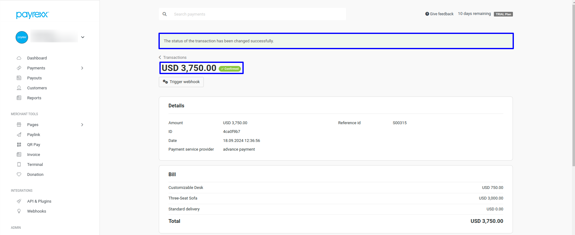 After get the successful payment confirmation, User can view the detail of payment information and successfully message.