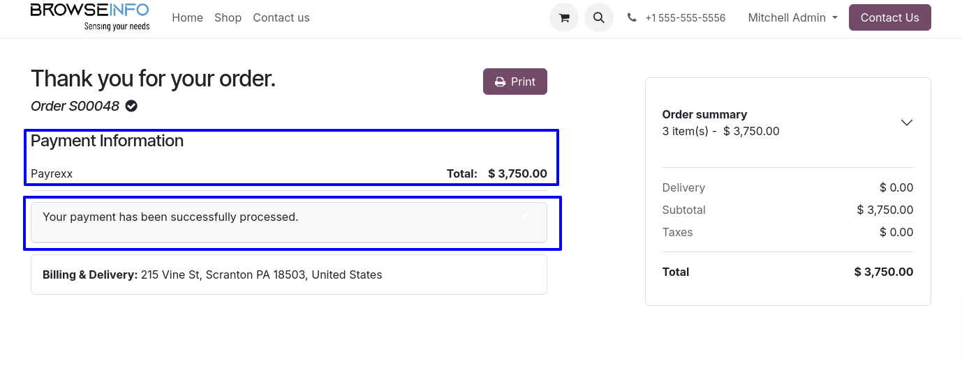 Fig. shows the sale order with Grand Total of ordered products and payment detail.