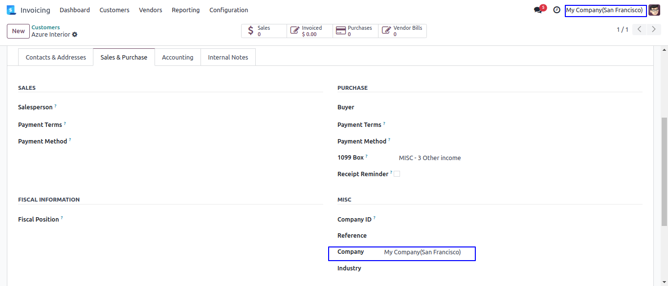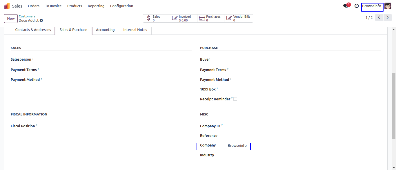 By default odoo sets the default company for all objects/views from the user's session i.e Sales Order,Invoice Purchase etc, This default company doesn't set on contacts and partners. Default Company on Contacts and Products Odoo App helps users to set default company on product and contacts. While any user creates or imports products and contacts, Current user's company is set as the default company.