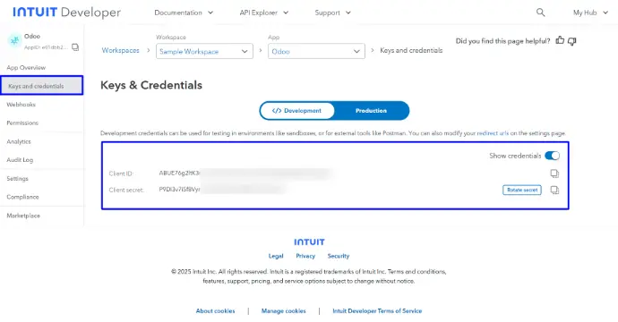 Under QuickBook or INTUIT developer, Copy generated client id and client secret id URL.