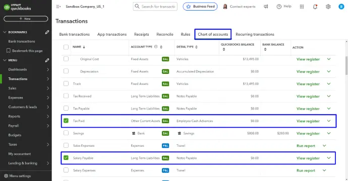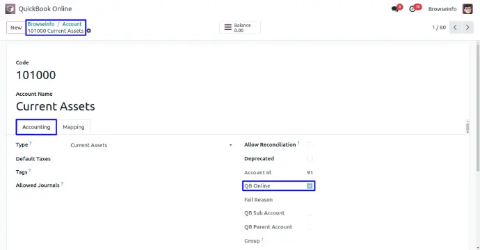 User can view the specific detail of account with enabled "QB Online" checkbox.