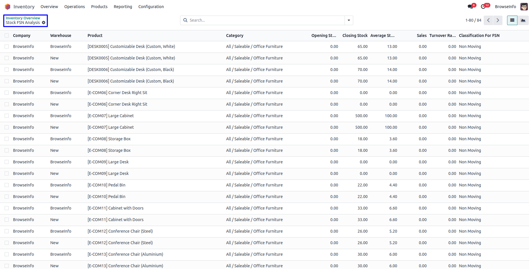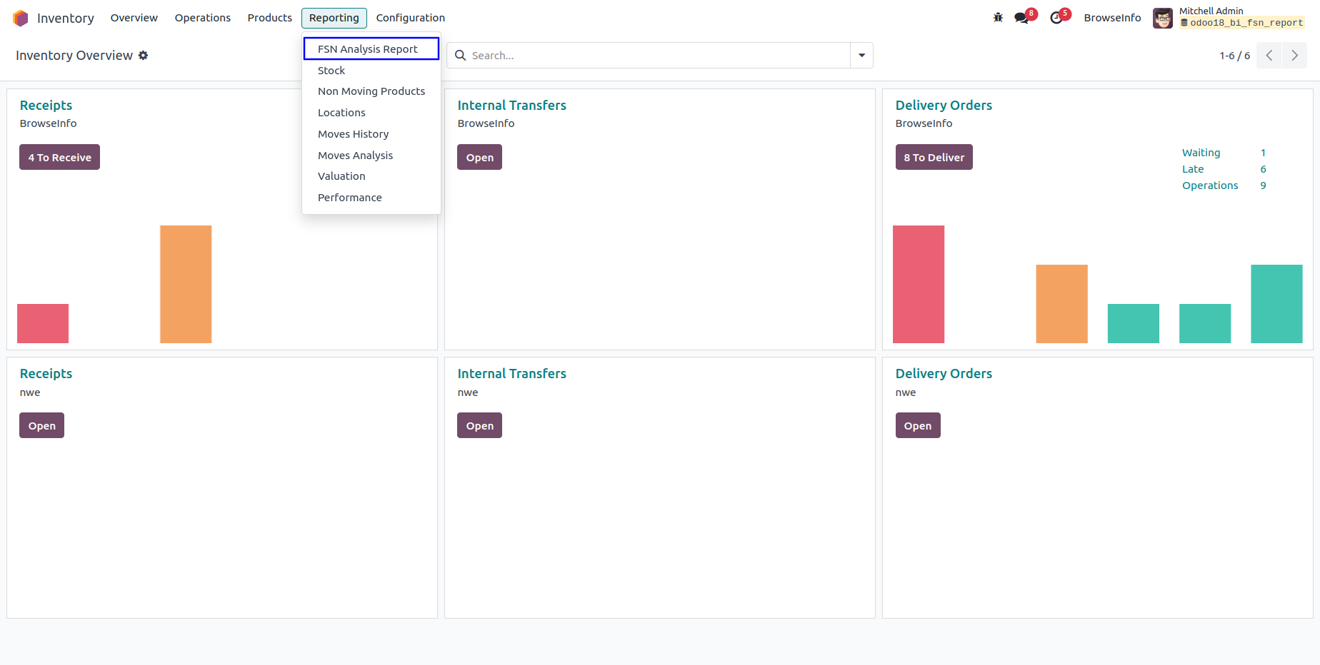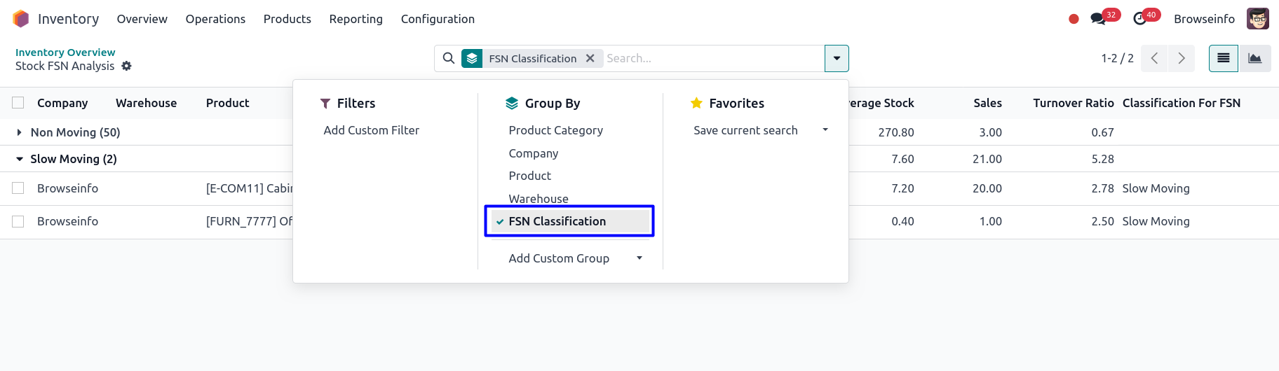 Under Inventory > Reporting menu user can see "FSN Analysis Report" menu.