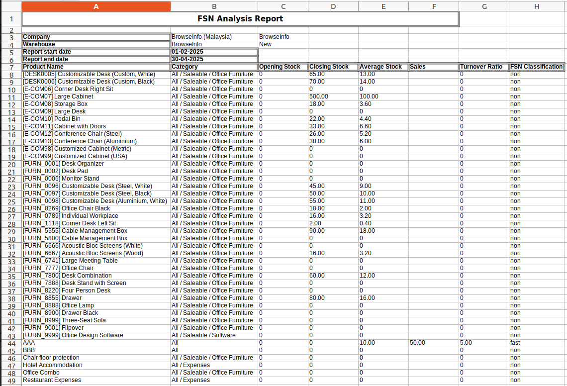 Stock FSN Excel Report
