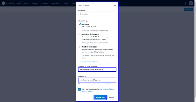 Add Company and redirect URL then create app.