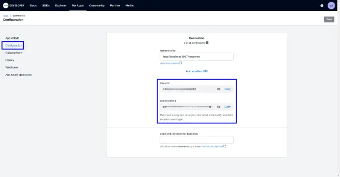 Once created new app, Copy generated client id and client secret id URL.