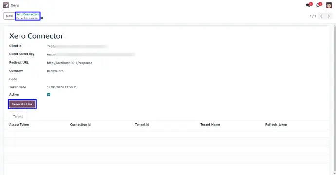 Set credentials into xero connector and generate connection link.