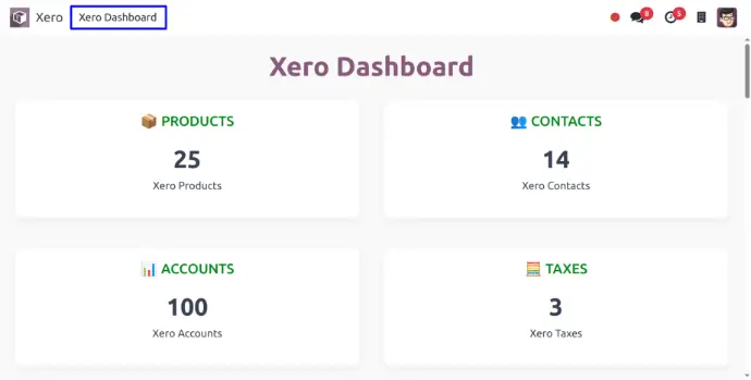 In Xero Dashboard, User can directly view Import and Export Products, Contacts, Accounts and Taxes
