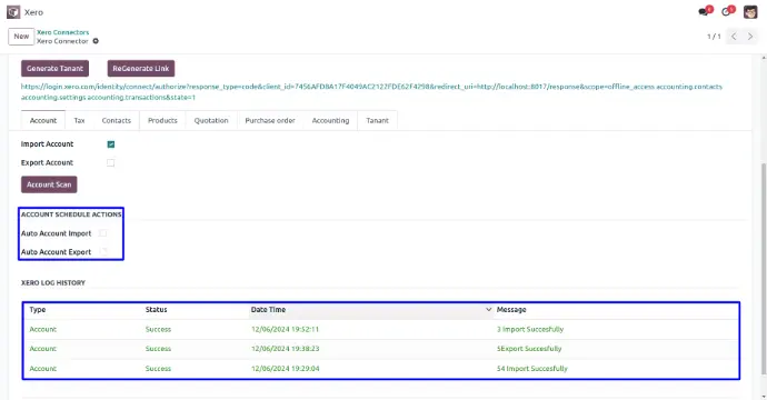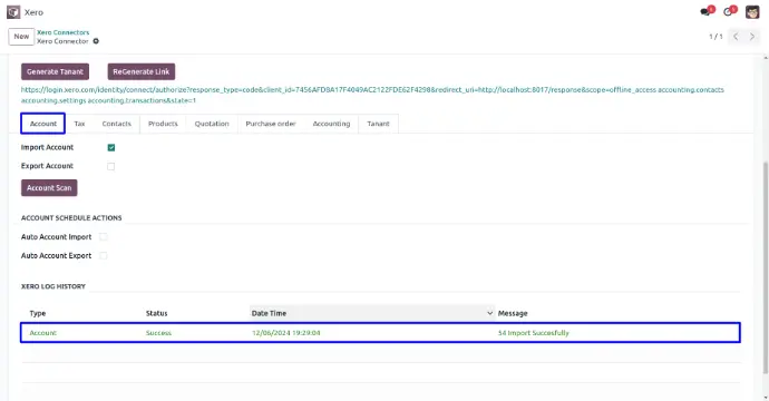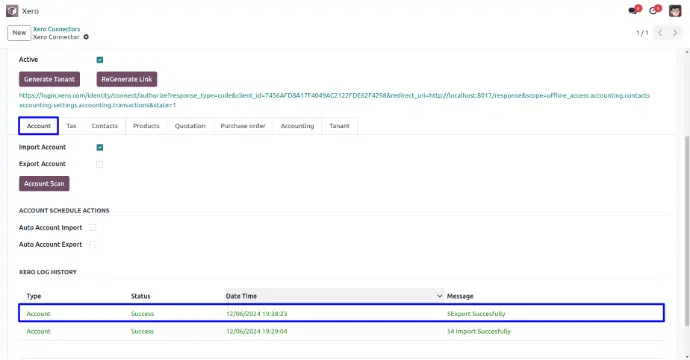 User can view xero log history of import account.