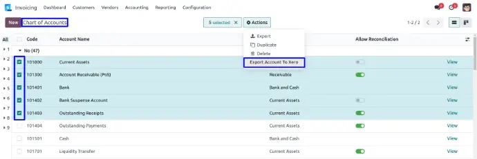 By selecting multiple account, User can easily export account to xero.