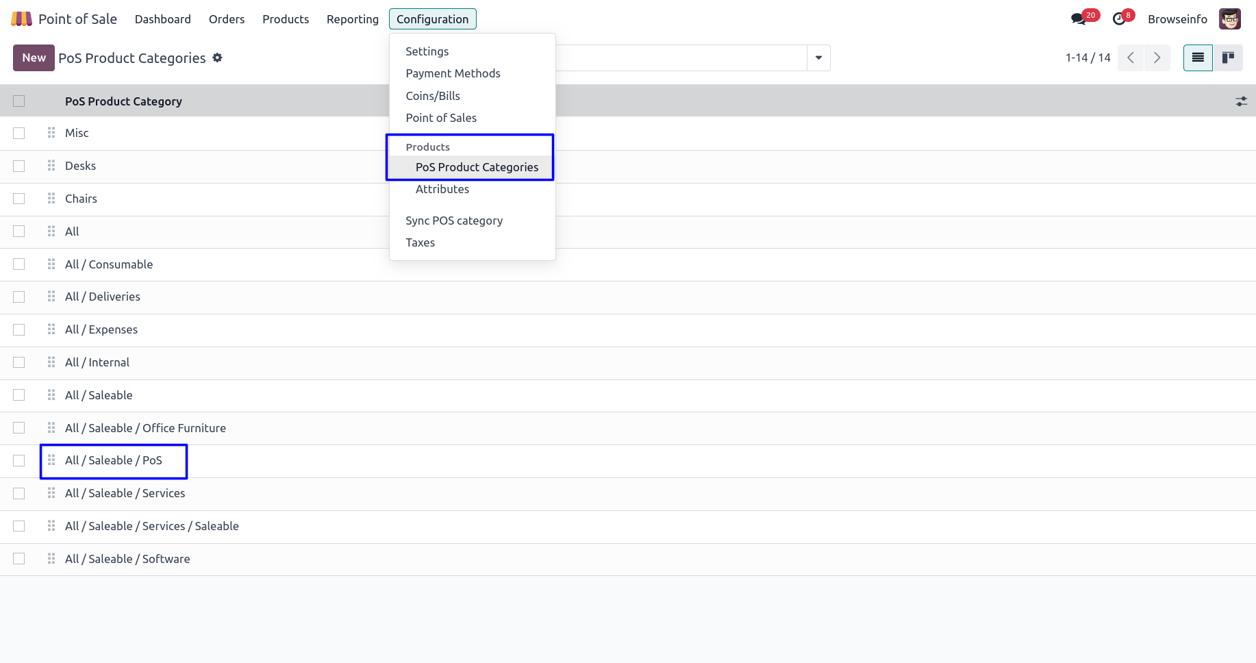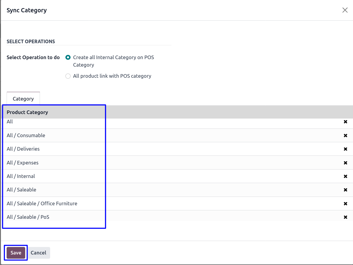 Select "Create all Internal Category on POS Category" operation then you can see list of categories.