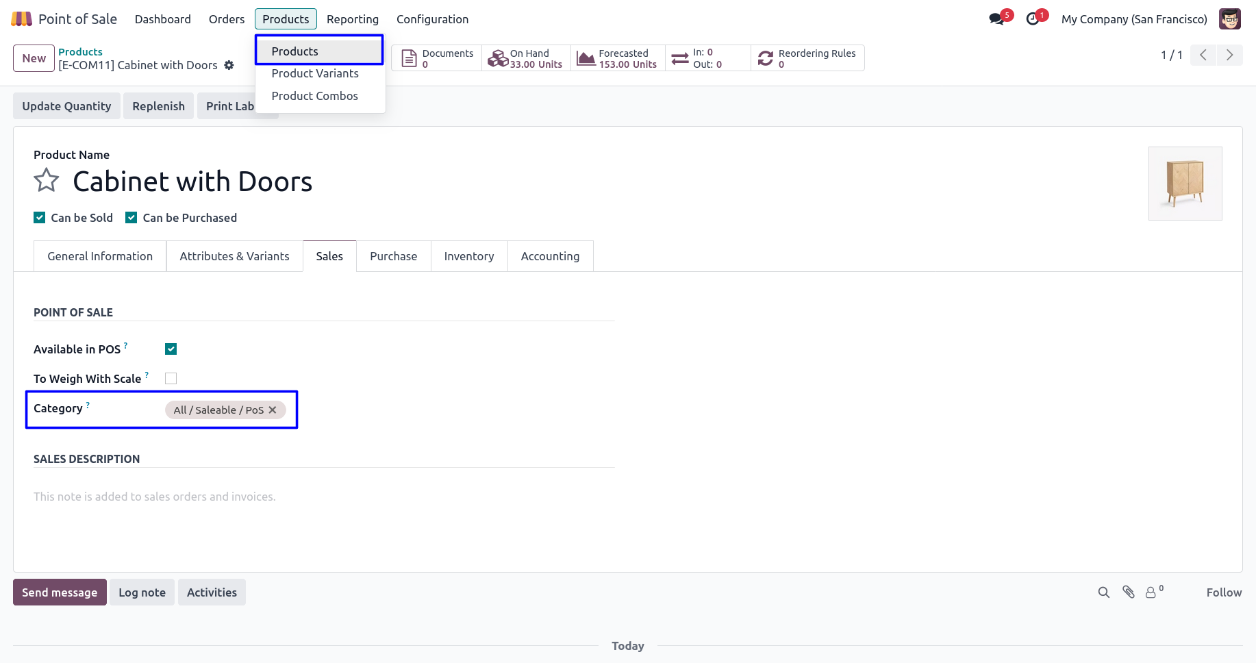 Goto point of sale configuration settings there is a two different option for sync internal category with POS category as like. 1) POS new Category Sync & 2) POS new Product Sync