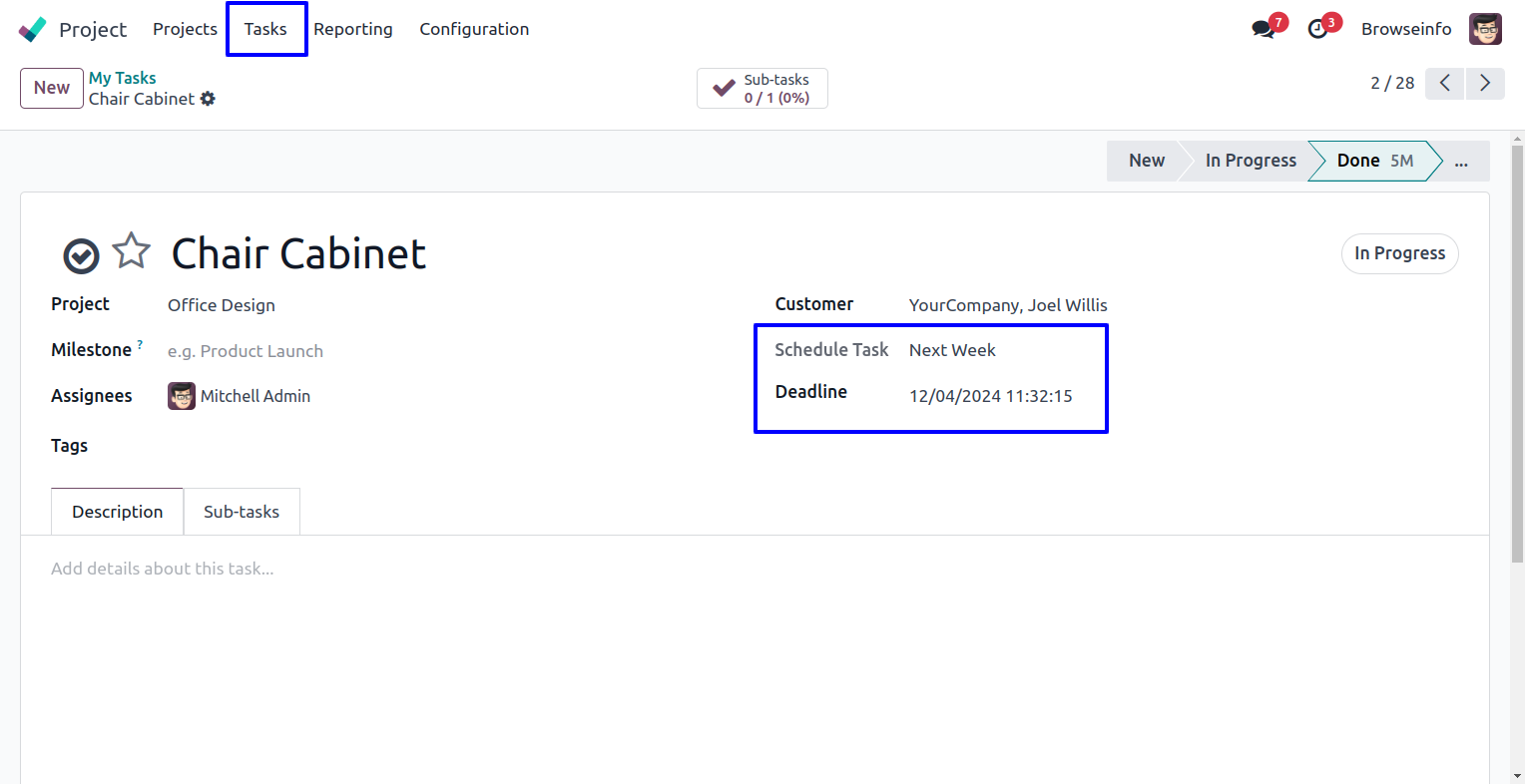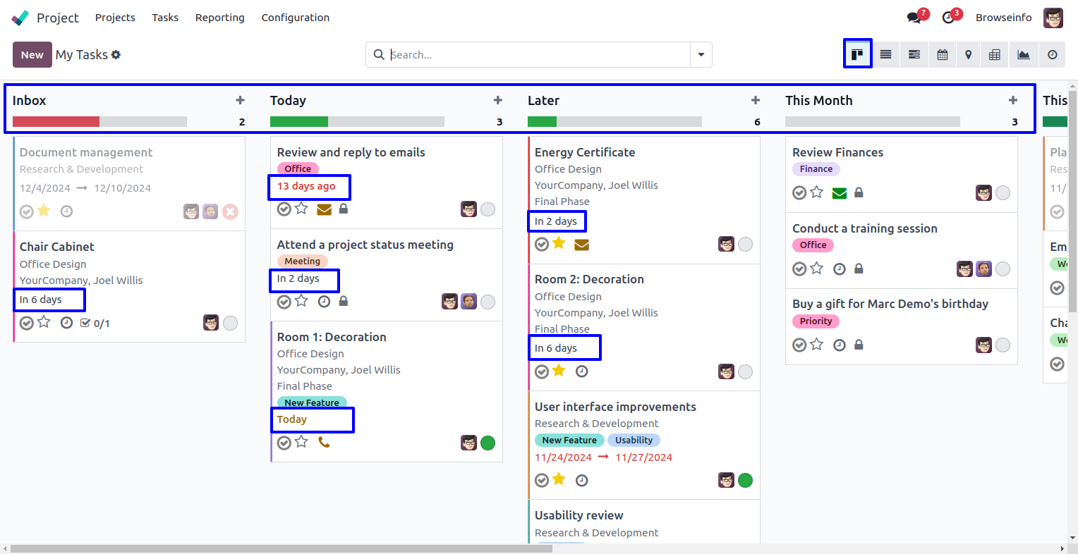 Based on task deadline user can see task schedule on task kanban view.