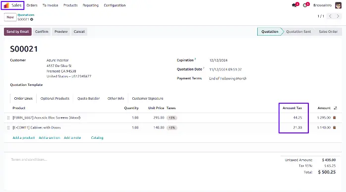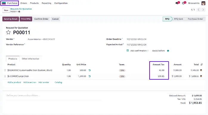 This Odoo apps helps for Calculating tax per invoice line ,sale line and purchase order line. This Odoo apps helps to calculate Amount tax separately for each invoice line, sales order line and purchase order line. By default on Odoo tax amount calculates and display on whole invoice and sales/purchase order, So user can not see tax amount for each invoice line, sale order line and purchase order line. This module helps to do that and it calculates Amount tax separately for each invoice line, sales order line and purchase order line in Odoo ERP.