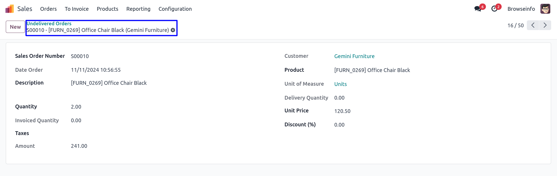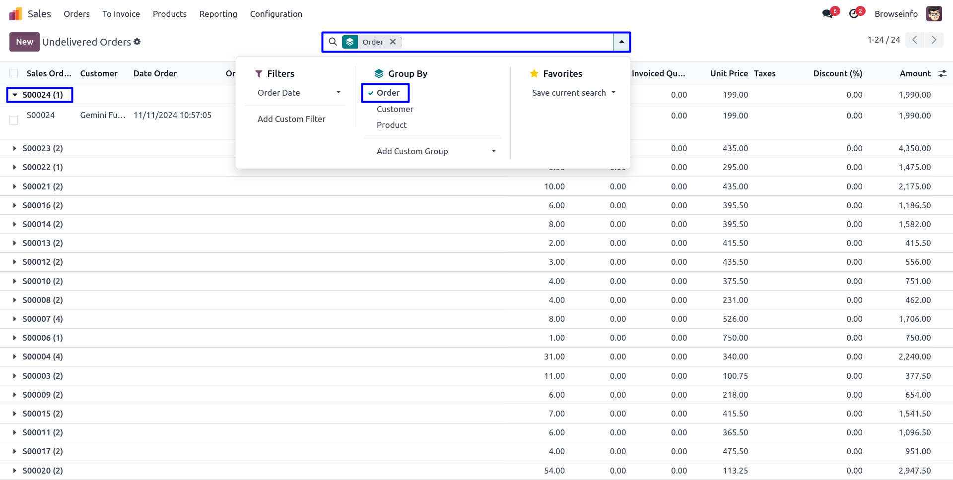 User can find all undelivered sale order easily with all information like quantity, delivered qty, invoiced qty, discount, customer etc.