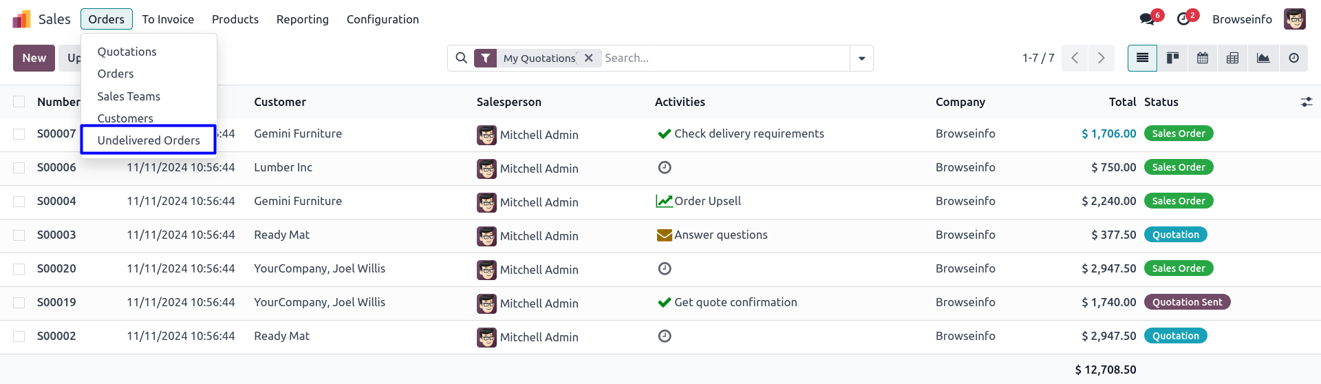 Under Sales > Orders > Undelivered Orders menu user can see all undelivered sales orders.