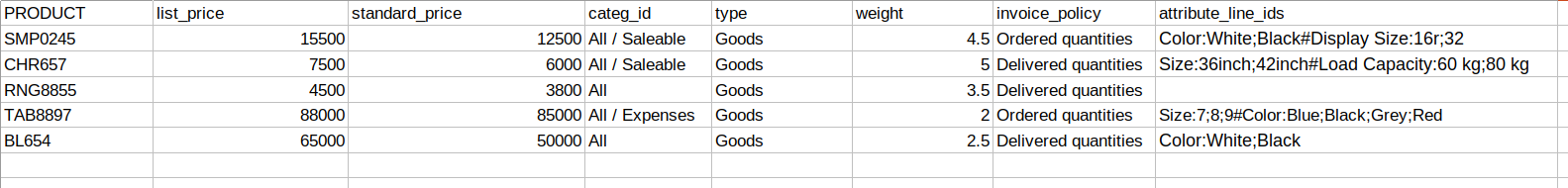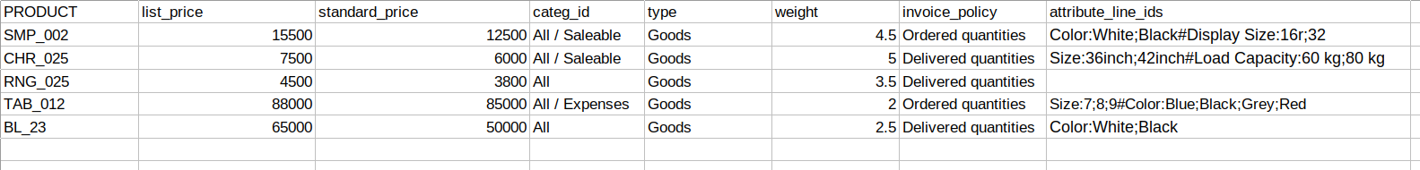 Given below is the sample of import file to update product,It is mandatory to use given format to create XLS file.