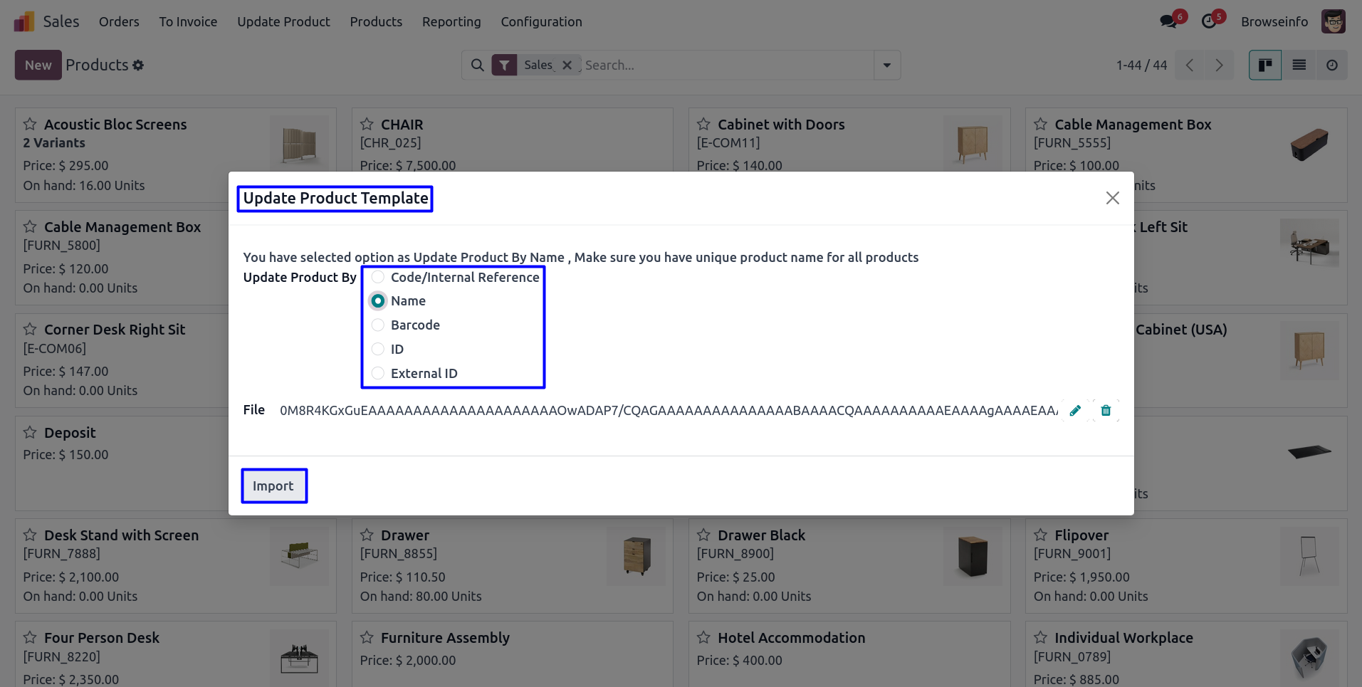 Advance Update Product from Excel Odoo App helps to update product templates and update product variants easily from excel files . Users can update products by code/internal reference, barcode, name, id and external id from excel file. You can only prepare a file with a column which you want to update on product template/product variants only you have to add column name as field's technical name and those data will be updated according to your selected option on wizard.