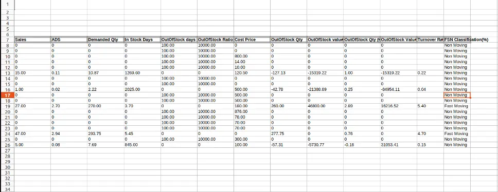 User can see different stock values like ads, incoming qty, outgoing qty, current qty and virtual stock qty, demanded qty, overstock qty, fsn classification and many more.