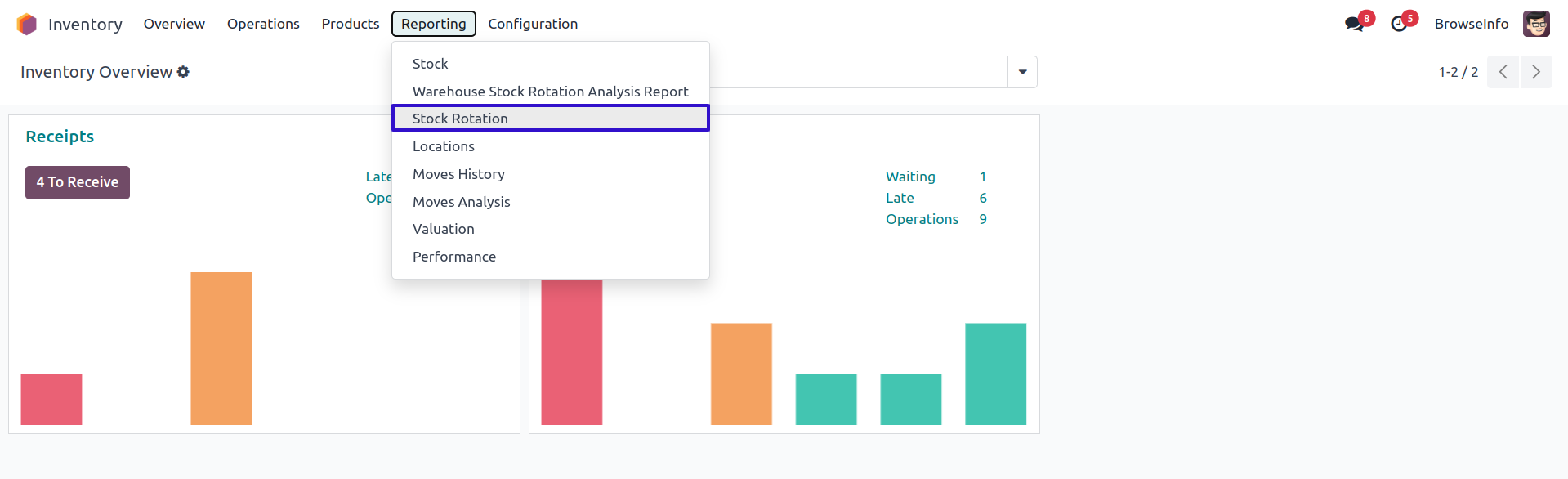 Under Inventory > Reporting menu user can see "Stock Rotation" menu.