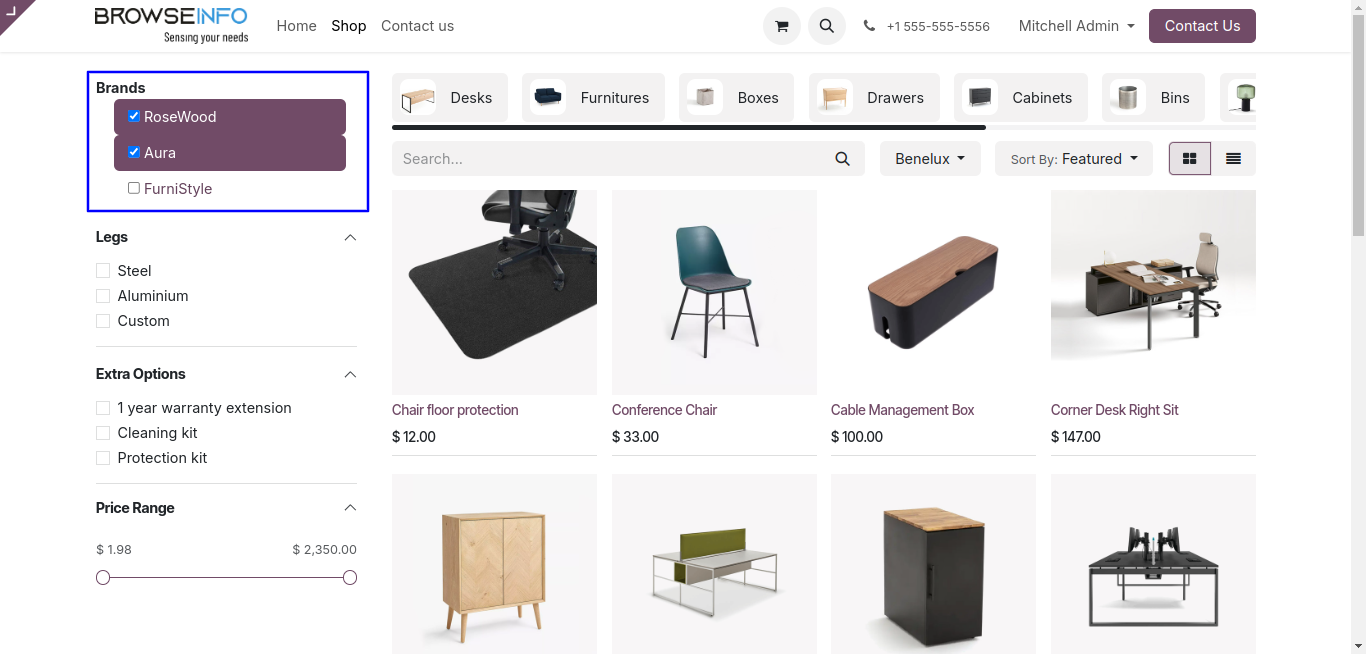 Using this Odoo apps you can filter Product Based on different category Brands from the Odoo website as well as on Odoo Backend, After installing this Odoo module you can add new product brand and assign this product brand to each products and easily filters and view product by its brand categories from the Odoo webshop as well as on Odoo Backend.