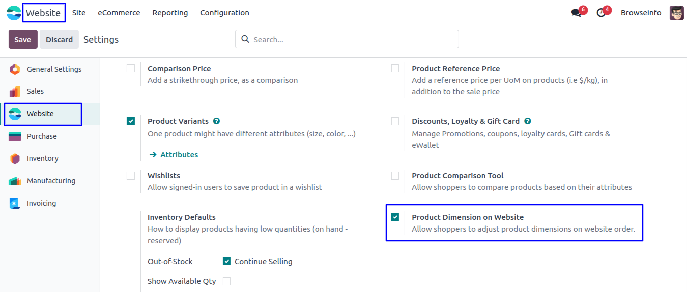 Manage product dimension for all application with website, sale, purchase, invoice, bill and manufacturing.