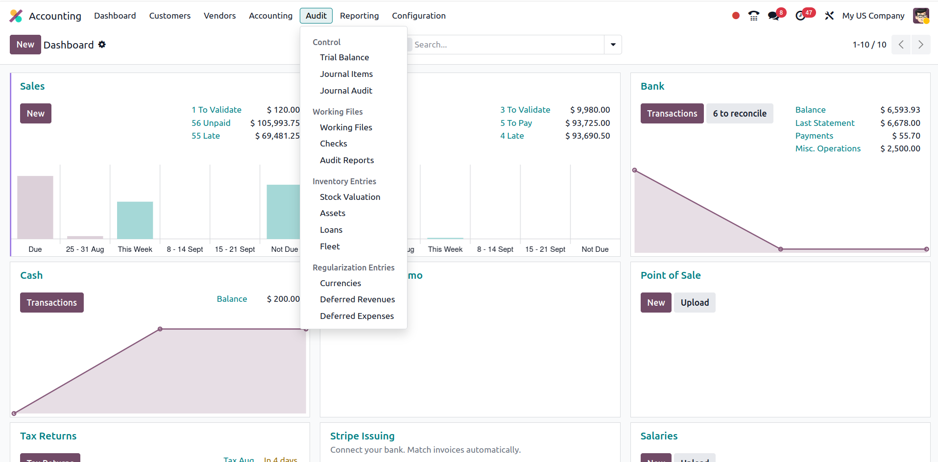 - A new Audit menu in Accounting provides structured access to audit tools.
