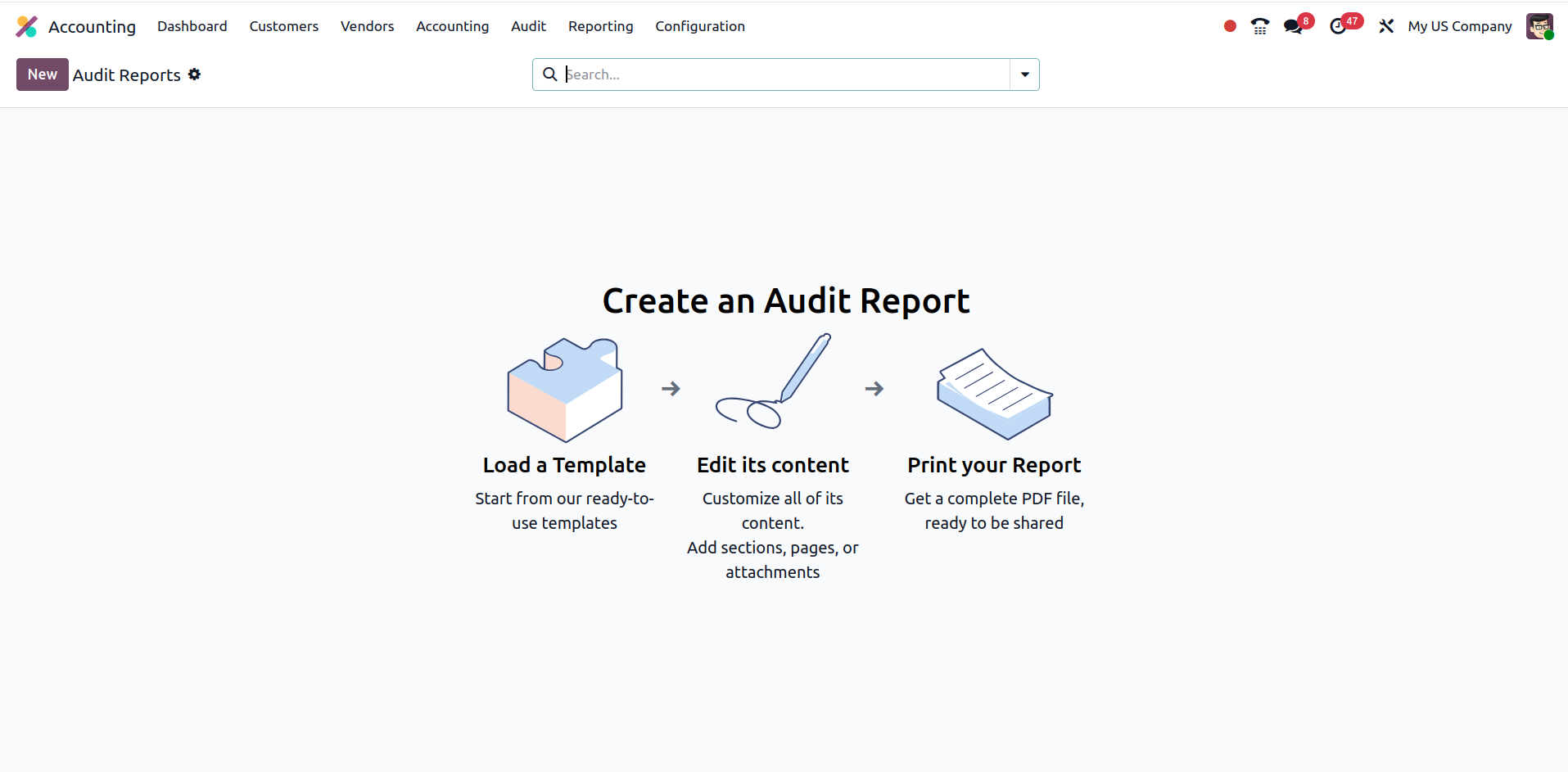 - Users can create audit report templates for recurring compliance checks.