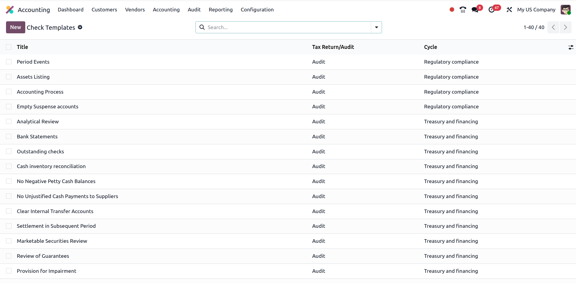 A company can set up a template for monthly journal audit and reuse it every period.