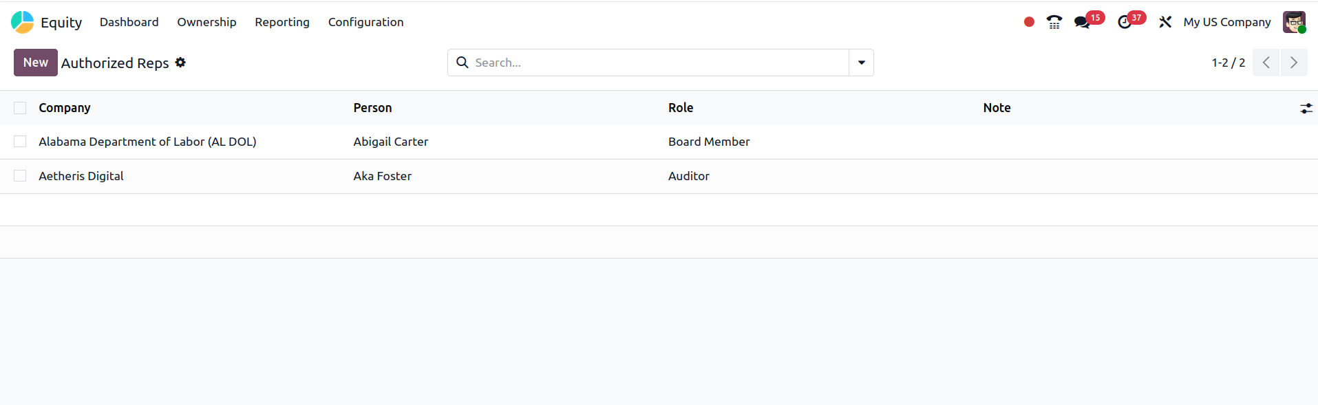 Odoo19 makes governance transparent by maintaining an up-to-date record of board members, auditors, and signatories. These representatives are directly linked to equity records, ensuring compliance and accountability. Instead of tracking governance in separate legal docs, everything is consolidated within Odoo.