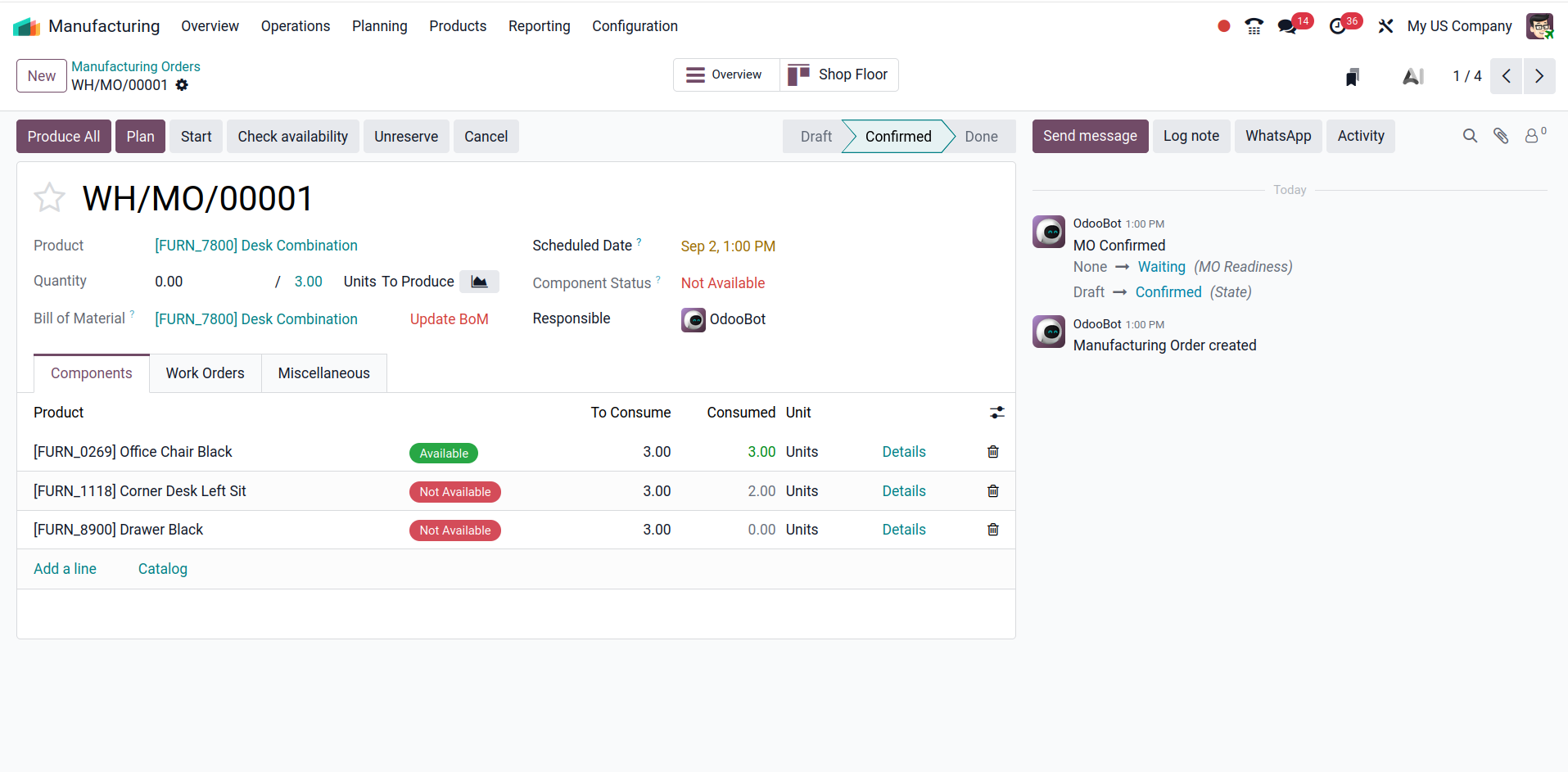 - Real-time visibility of each component’s availability during Manufacturing Orders (MOs).