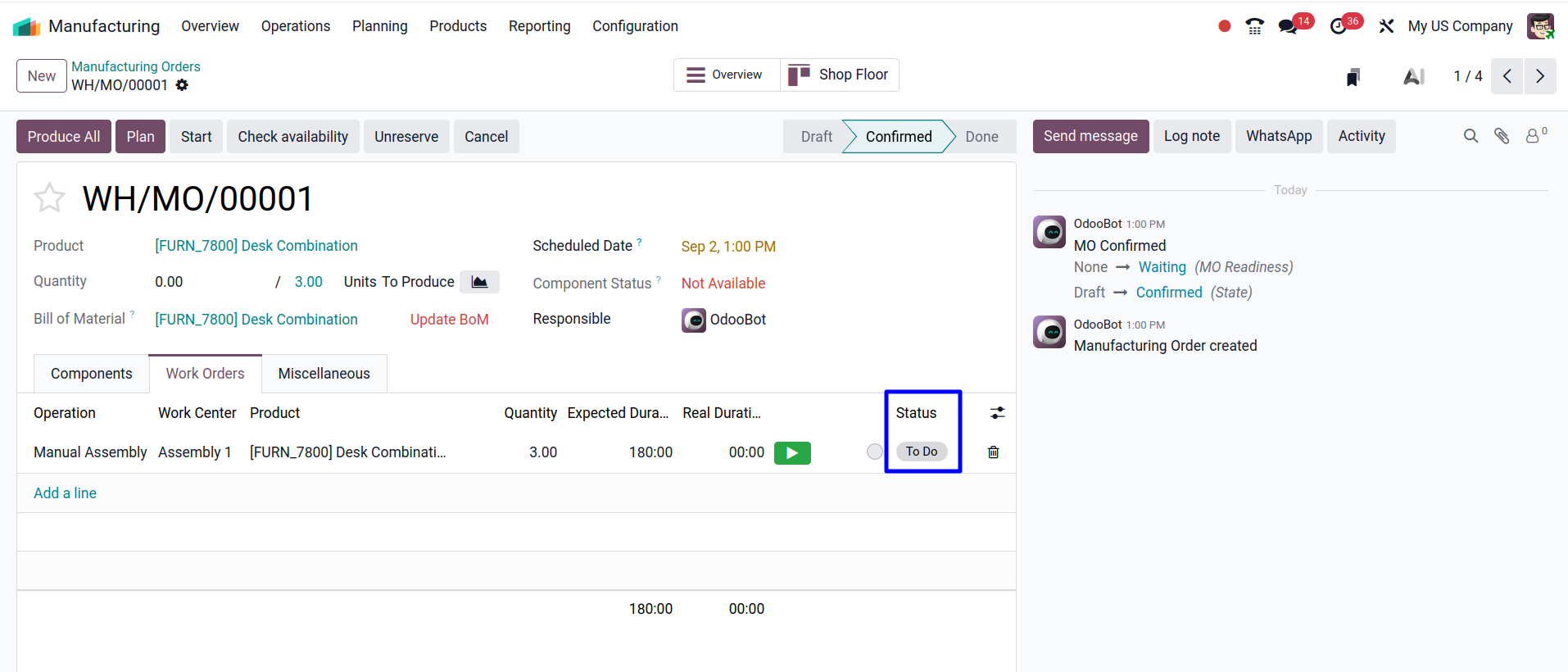 Odoo19 strengthens its Manufacturing (MRP) module with component status tracking, visual tags, and AI-powered chatter summarization. These features make production management more transparent, ensure parts are always traceable, and help managers save time with intelligent communication support.