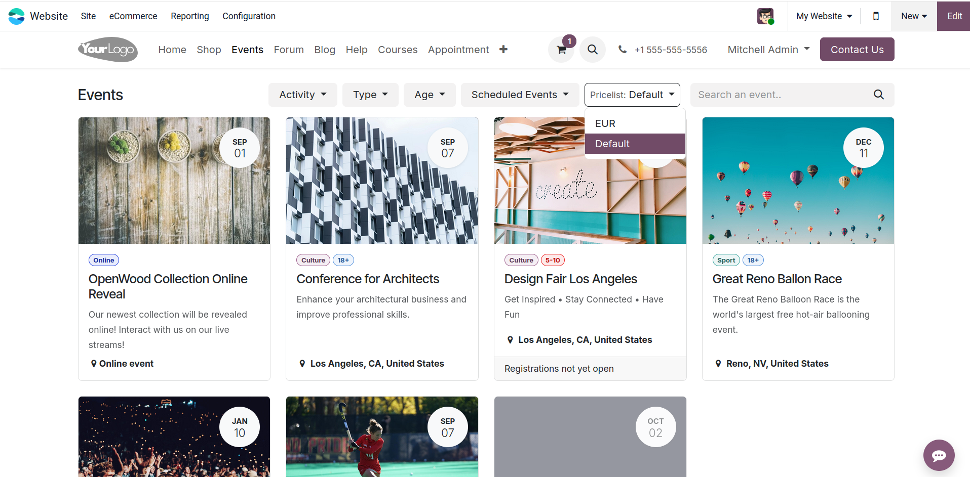 Event module now supports multi-currency pricelists.