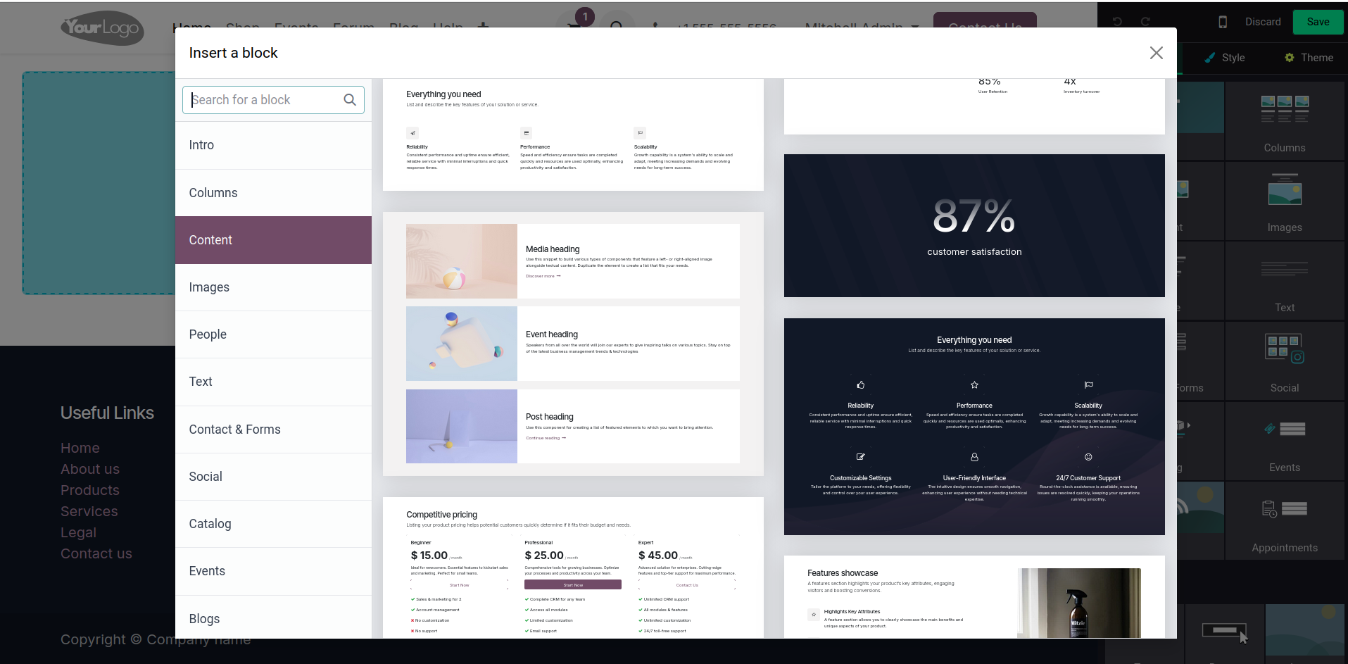 Pre-styled blocks like testimonials, pricing tables, and CTAs.