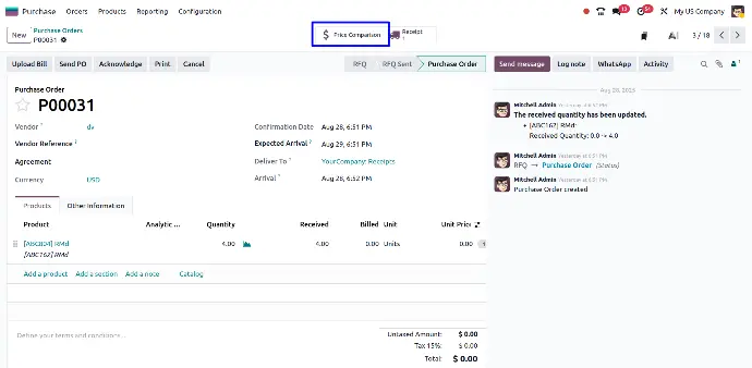 Odoo19 introduces a Price Comparison Smart Button directly on the purchase order. This feature allows procurement teams to compare the product’s price across previous POs with different vendors. Instead of searching manually, buyers can now instantly see if they’re getting the best deal.