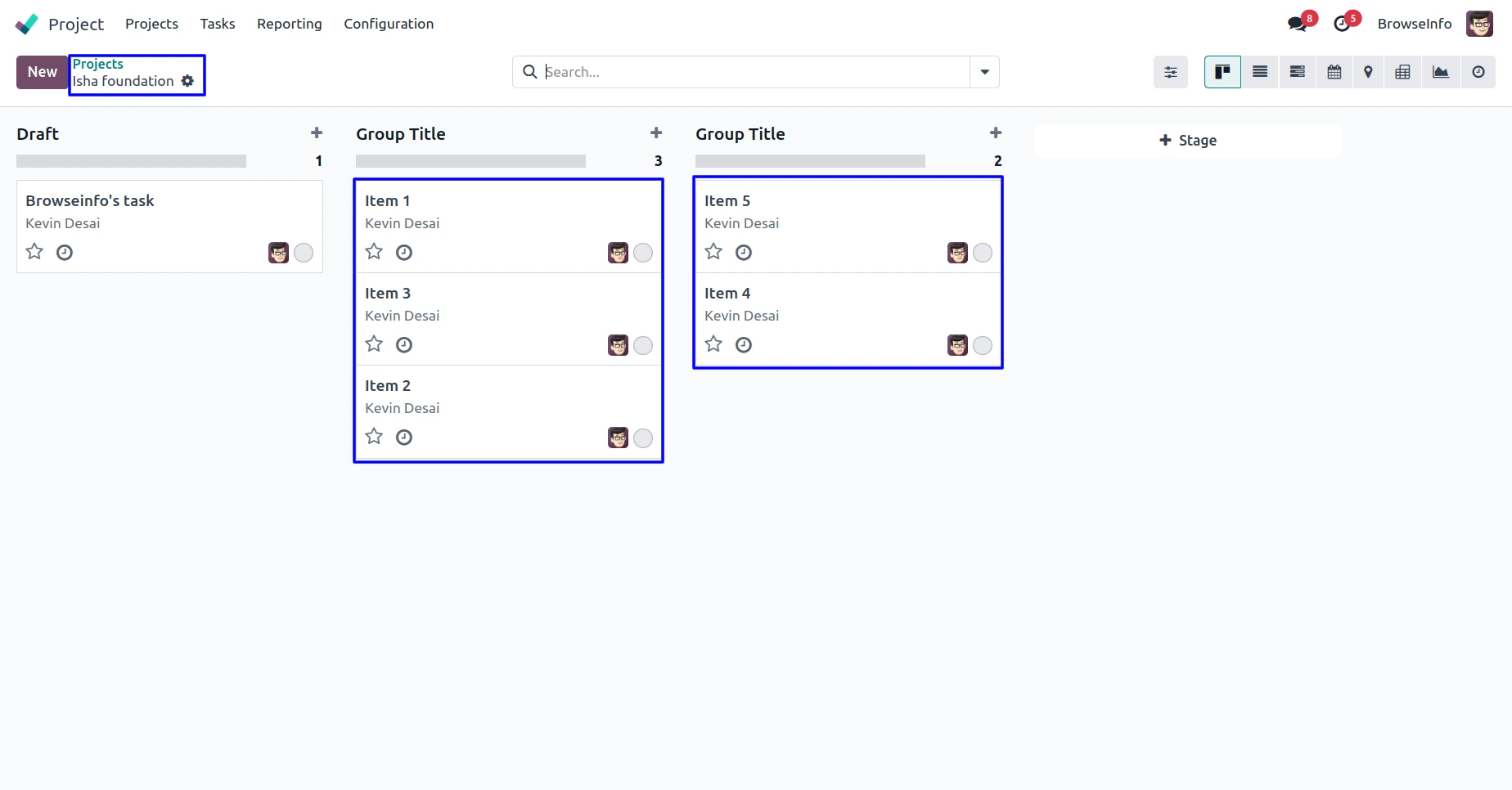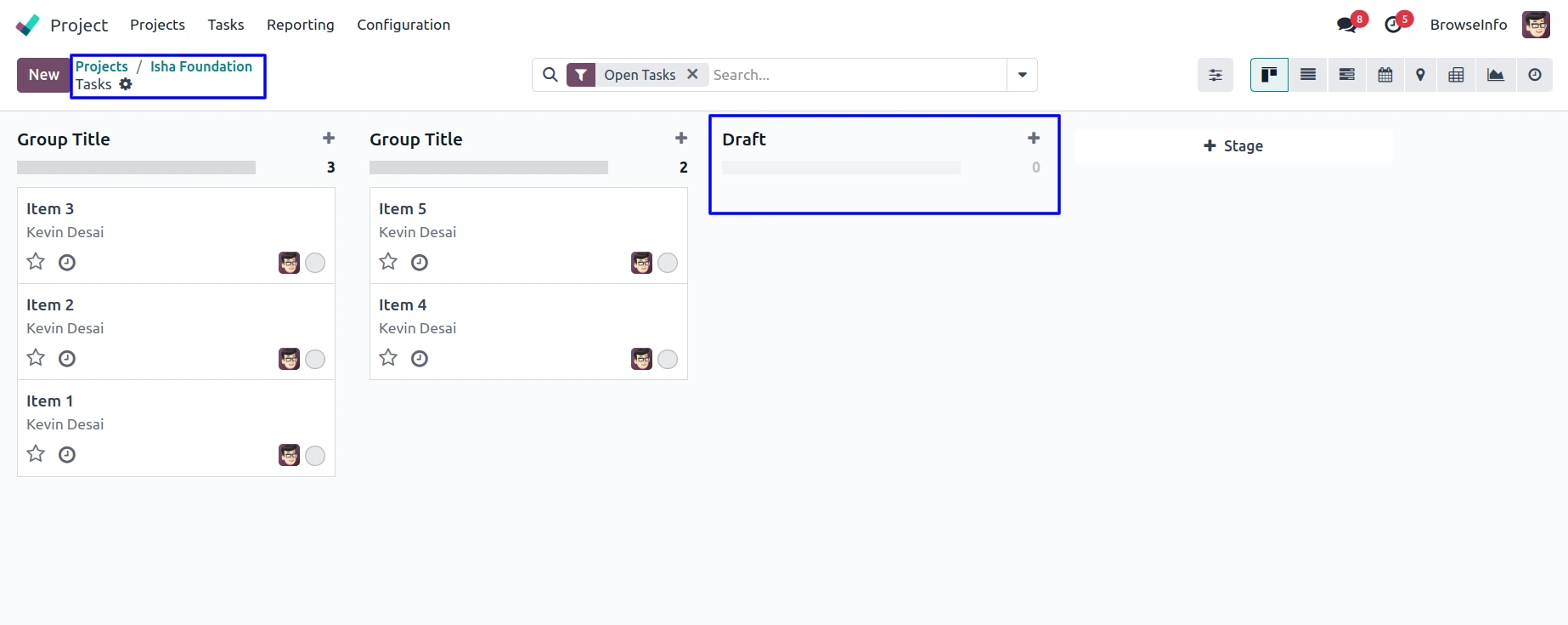 In the Isha Foundation project, the user can now see the newly created Draft stage, which is visible in the task board view, as shown in the image.
