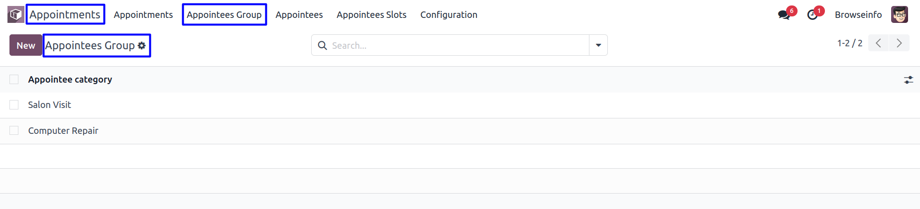 User can create appointees group by creating appointee category and select appointee.