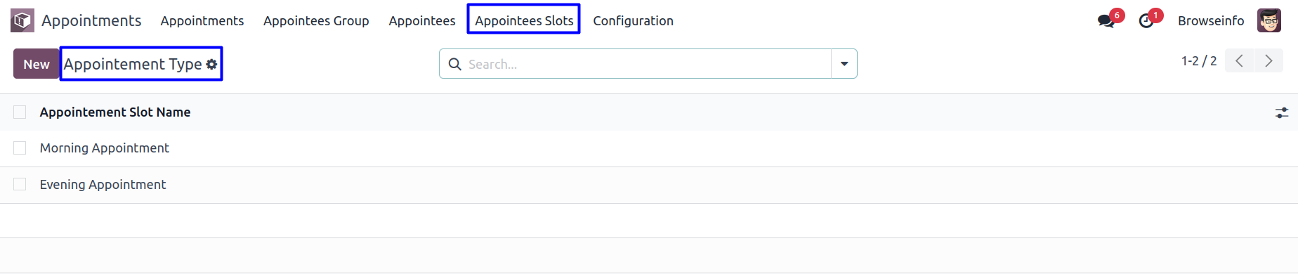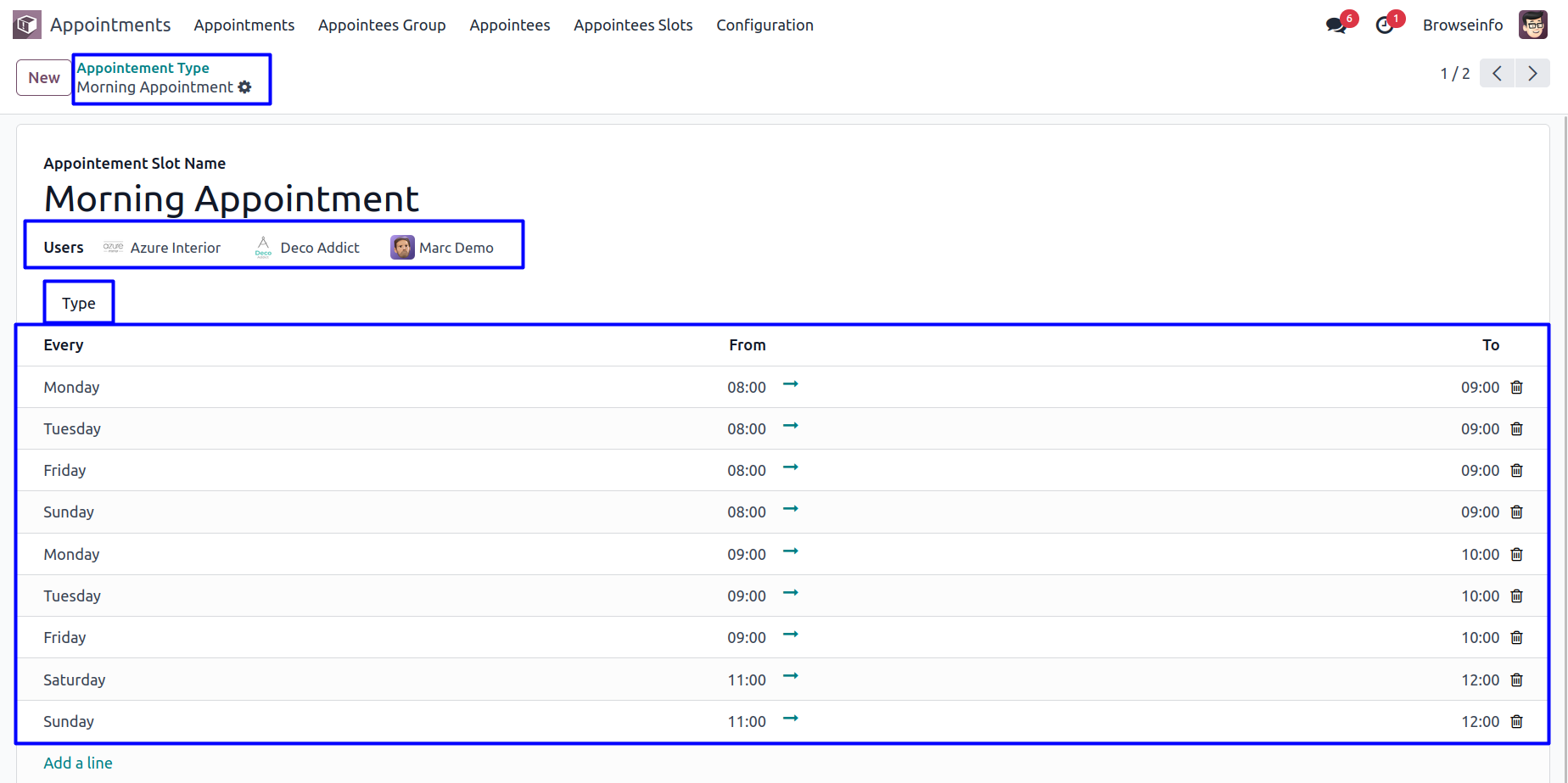 User can create appointees slot by creating appointment slot name, selection of users and type of slot and timings.