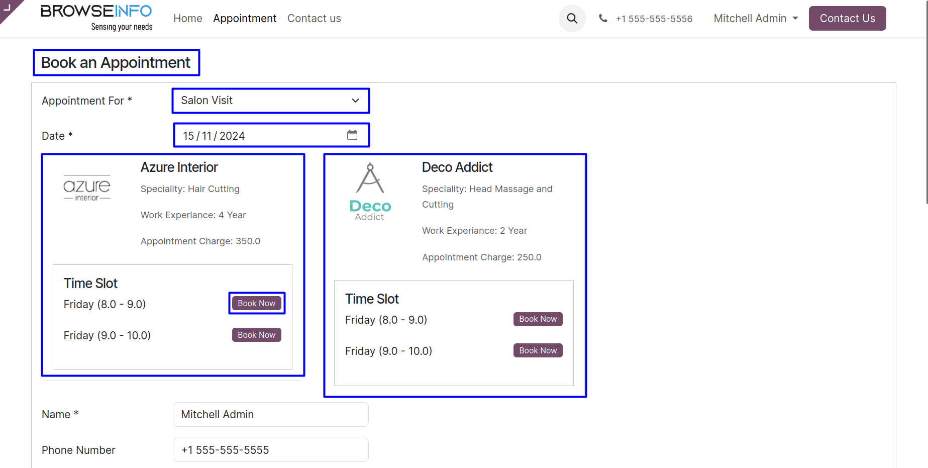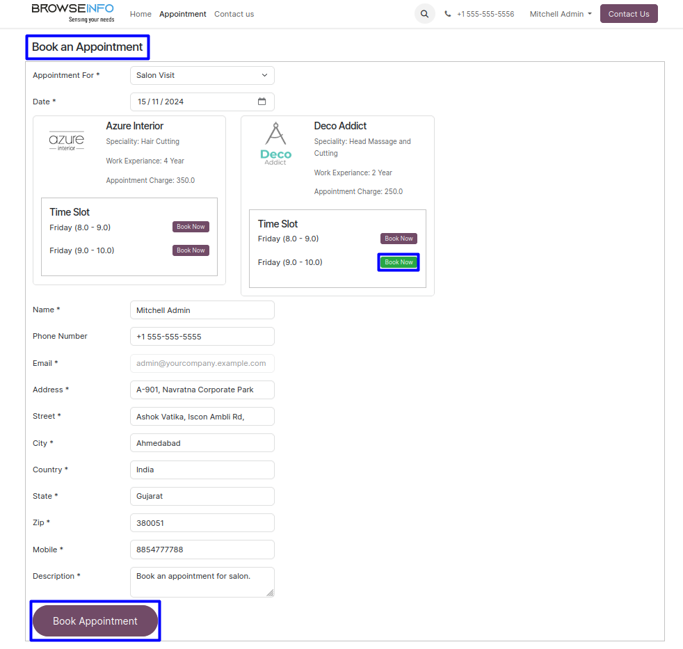 Once user select non allocated time shot the 'Book Now' button shown in green color then fill up the other details and click on 'Book Appointment' button to book an appointment.