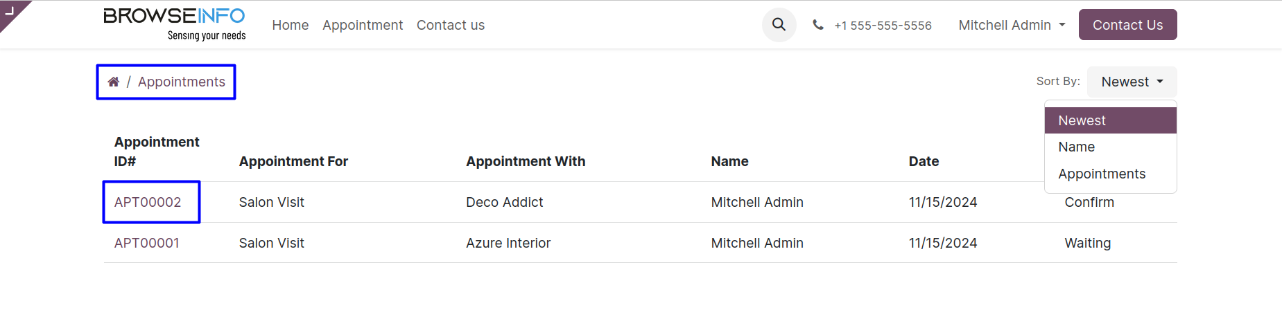 User can view the list of created appointment from the portal and easily manage it.